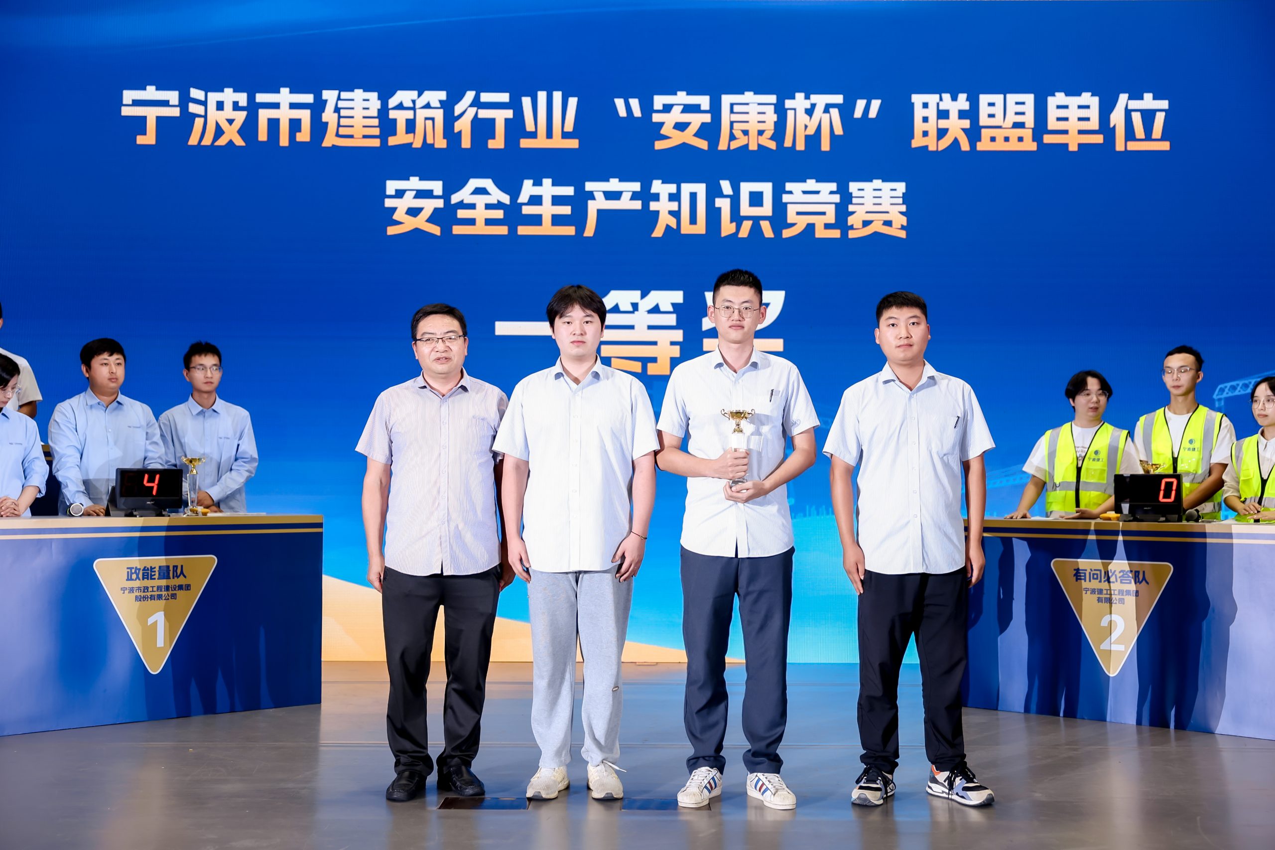 ? ? ? 經(jīng)過三輪的激烈角逐,最終由葉經(jīng)店、李盛、程文博三位隊(duì)員組成的寧波建設(shè)集團(tuán)代表隊(duì)脫穎而出,斬獲一等獎(jiǎng)。寧冶勘、中交水利、寧波建工工程集團(tuán)榮獲二等獎(jiǎng),住宅集團(tuán)、寧波市政集團(tuán)、中交三航、產(chǎn)城集團(tuán)獲三等獎(jiǎng)。寧波市海員建設(shè)工會(huì)主席楊真照為獲獎(jiǎng)選手頒獎(jiǎng)。