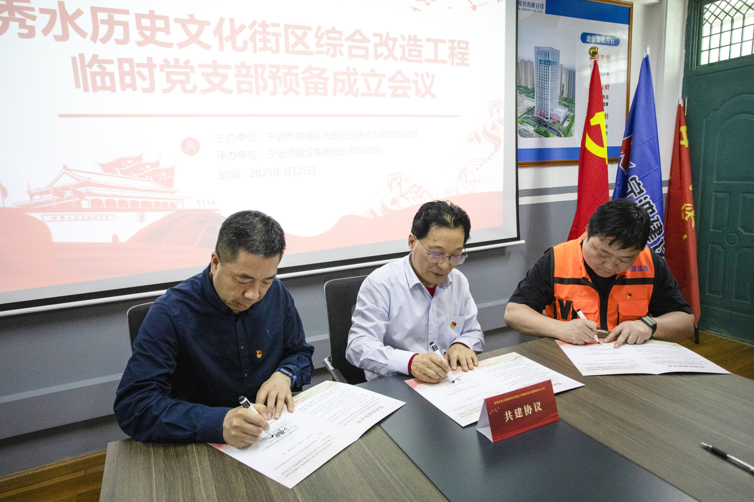 ? ? ? ?最后,海欣控股市政公司與寧波建設(shè)、誠(chéng)信監(jiān)理簽訂了共建協(xié)議。三方將在項(xiàng)目建設(shè)中加強(qiáng)合作,共同推進(jìn)黨建工作與項(xiàng)目建設(shè)深度融合,實(shí)現(xiàn)優(yōu)勢(shì)互補(bǔ)、資源共享、共同發(fā)展。
