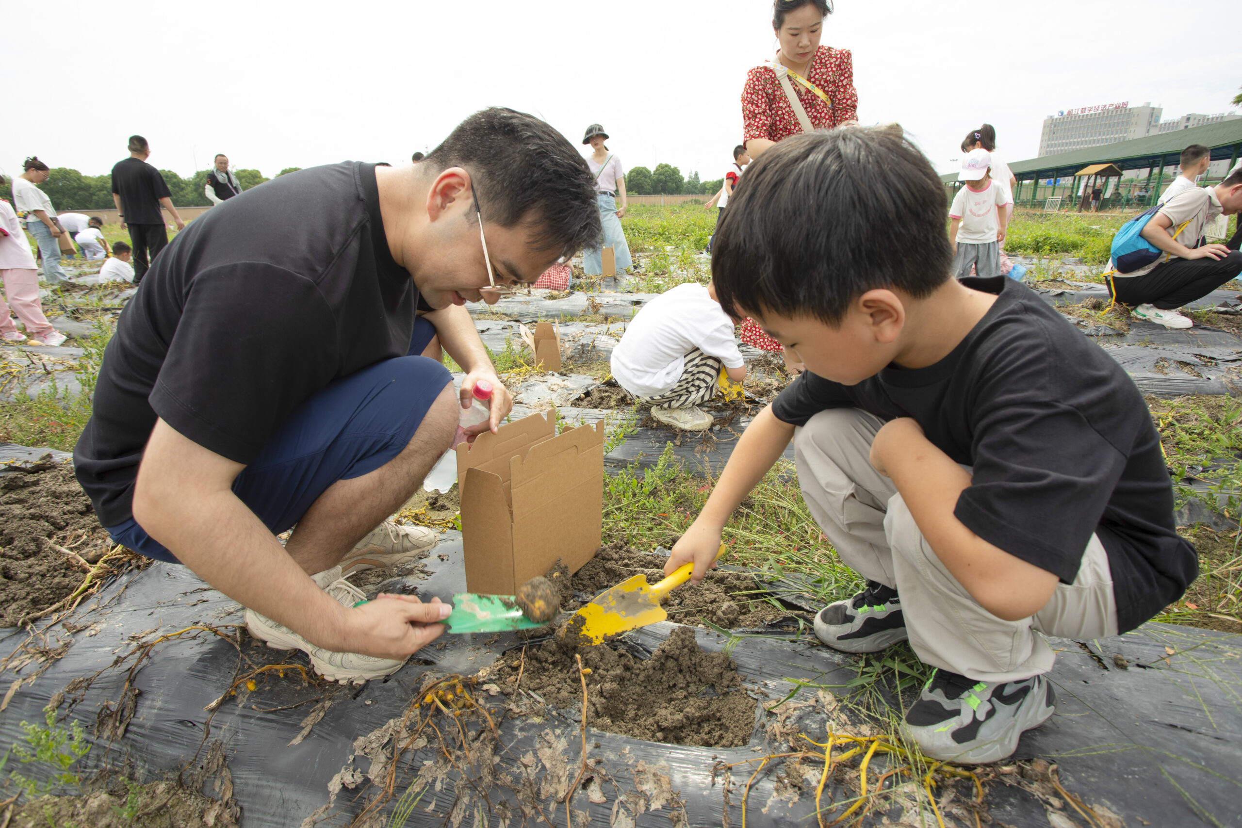 ? ? ? 孩子們?cè)诩议L(zhǎng)的陪伴下化身“小小采摘員”,在土豆田中,他們拿起小鏟子,彎腰觀察,在爸爸媽媽的幫助下,將一顆顆已經(jīng)成熟的土豆鏟入紙箱中,收獲的喜悅彌補(bǔ)了孩子們流下的汗水,歡聲笑語(yǔ)回蕩在田野間;