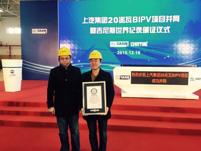 12月18日上午,世界最大光伏建筑一體化項(xiàng)目———上汽集團(tuán)55兆瓦分布式光伏項(xiàng)目一期20兆瓦發(fā)電項(xiàng)目在位于杭州灣新區(qū)的上汽大眾汽車有限公司寧波分公司并網(wǎng)發(fā)電,裝機(jī)容量打破了由上汽資產(chǎn)經(jīng)營(yíng)公司自己保持的“全球最大光伏建筑一體化電站”吉尼斯世界紀(jì)錄。